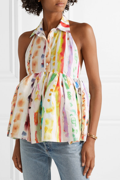Rosie Assoulin Open-Back Tie-Dyed Poplin Peplum Top $995