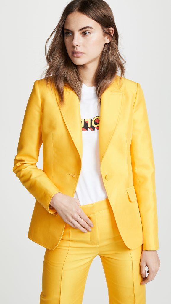 Savile Row meets starburst hues in this season’s standout pop-bright tonal tailoring. Matchy-matchy never looked so good.