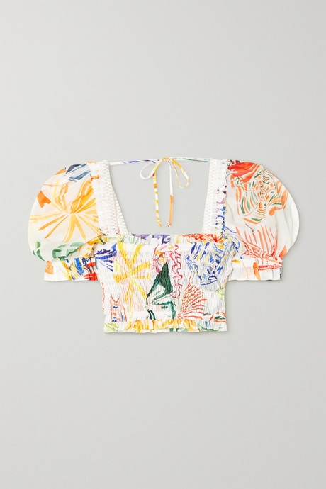 Charo Ruiz Georgia shirred Printed Cotton-blend Voile Top $313