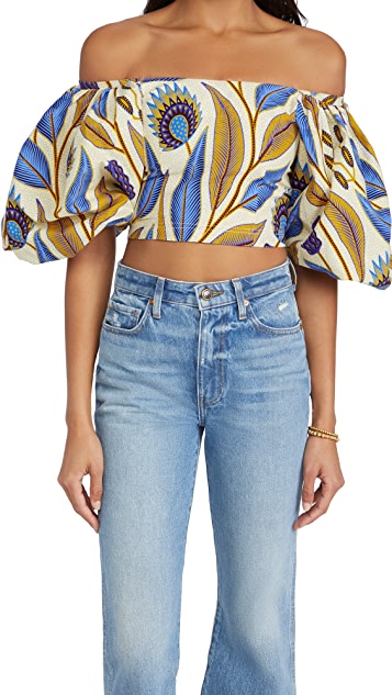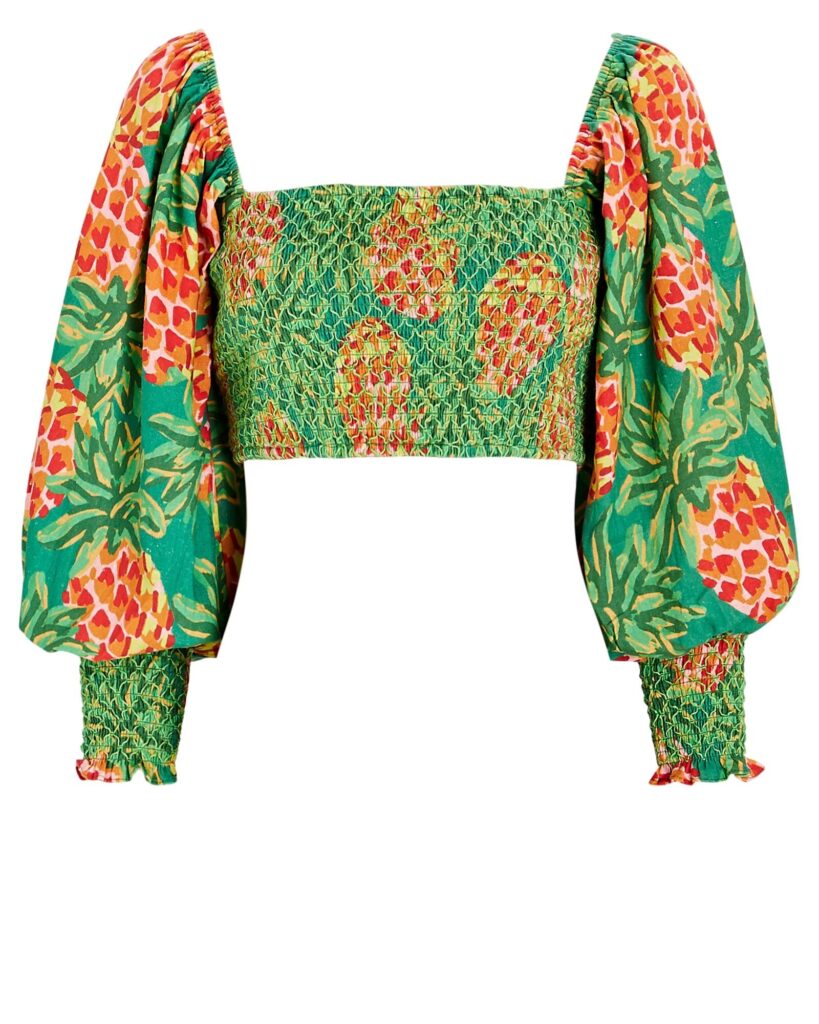 Farm Rio Pineapple Galore Smocked Crop Top $150