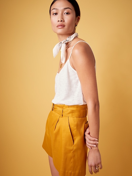 High-Rise Pleated 4″ Linen-Cotton Short $55