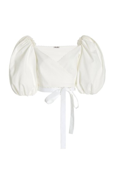 Miu Miu Puff-Sleeve Cotton Pique Cropped Wrap Top $1,200