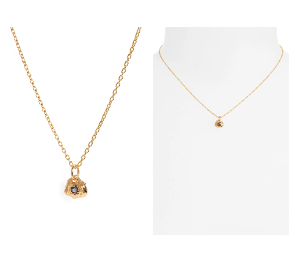 This delicate pendant necklace is set with a blue sapphire stone and is exclusive to Nordstrom. It looks lovely on its own or layered with other pieces.