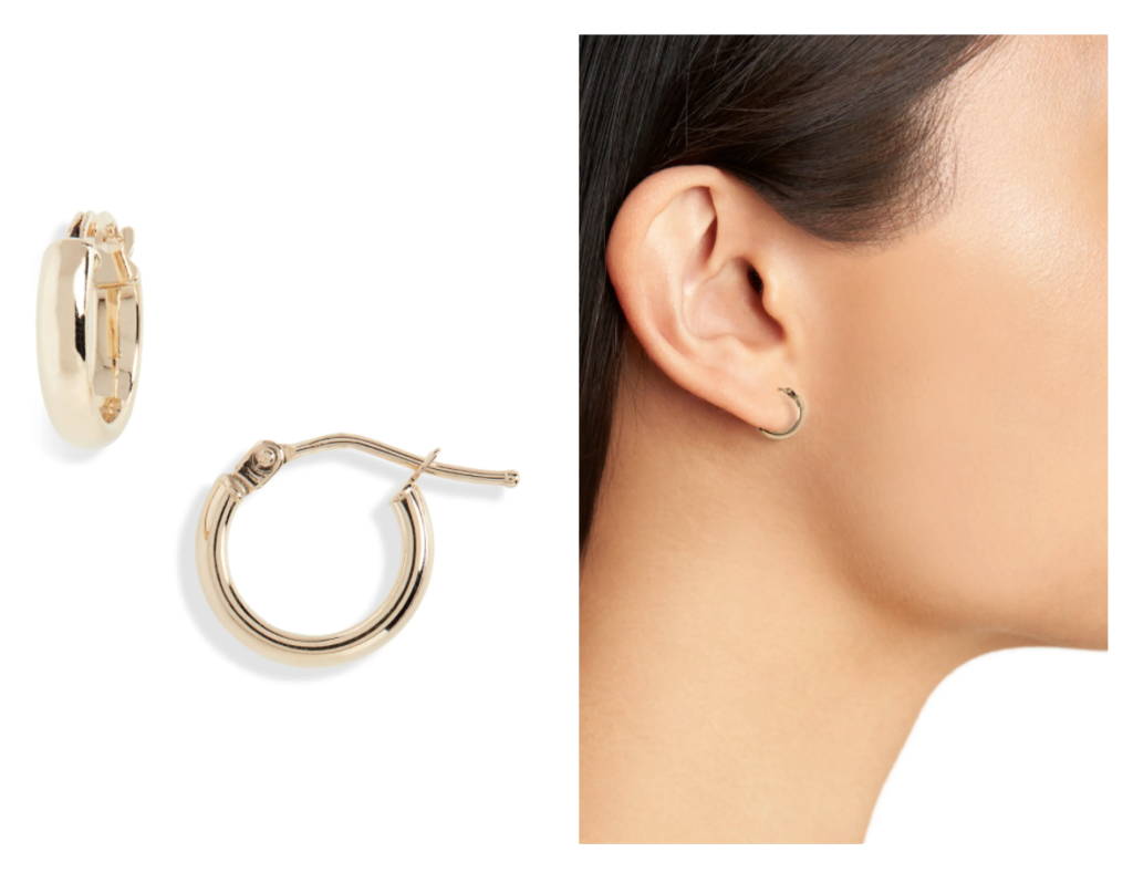 Simple, elegant, and timeless, these huggie earrings are fantastic for everyday wear. It’s available in both yellow and white gold.