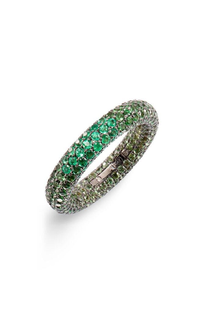 Available in green garnet, pink sapphire, and rainbow, this breathtaking 5.88ct. ring sparkles till no end. The ombre design makes it extra special.