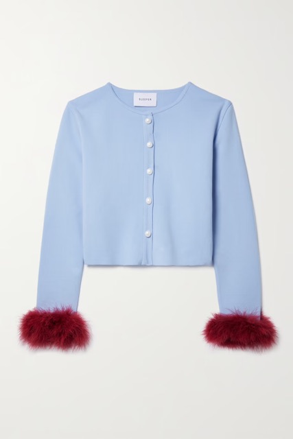 Sleeper + NET SUSTAIN Convertible Cropped Feather-Trimmed Knitted Cardigan $290