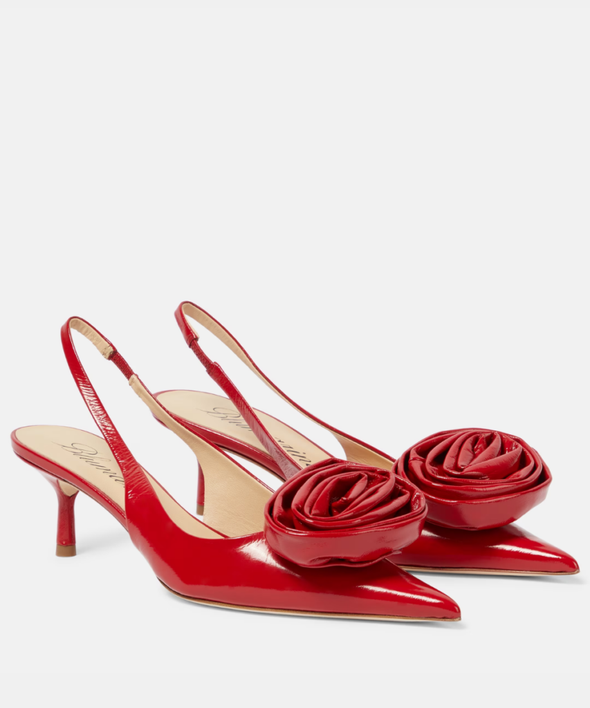 Blumarine Floral-appliqué Leather Slingback Pumps $693