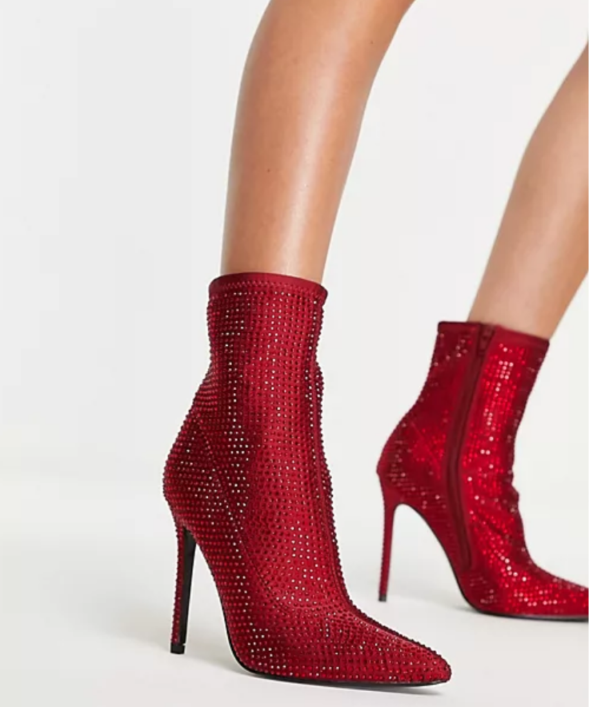ASOS DESIGN Esme Embellished Heeled Sock Boots in Red $82