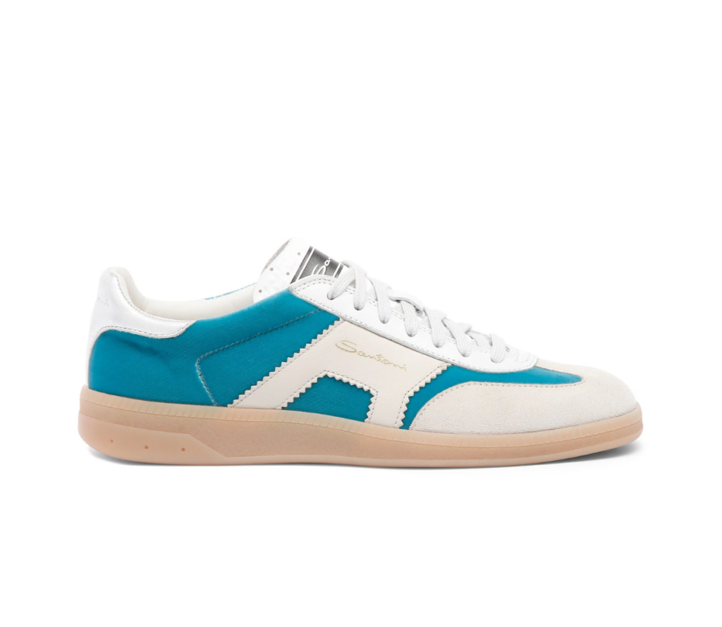 Light Blue and Beige Velvet, Suede, and Leather Oly Sneaker $650