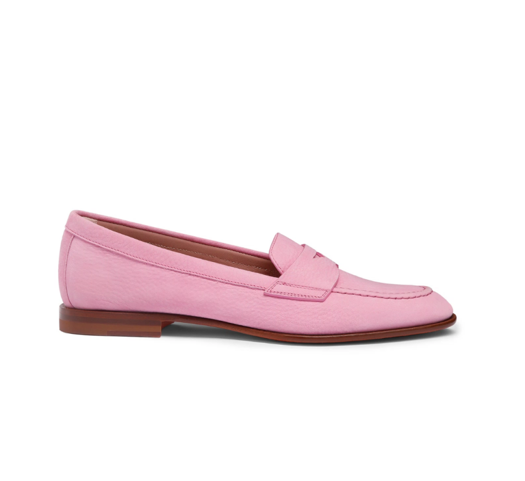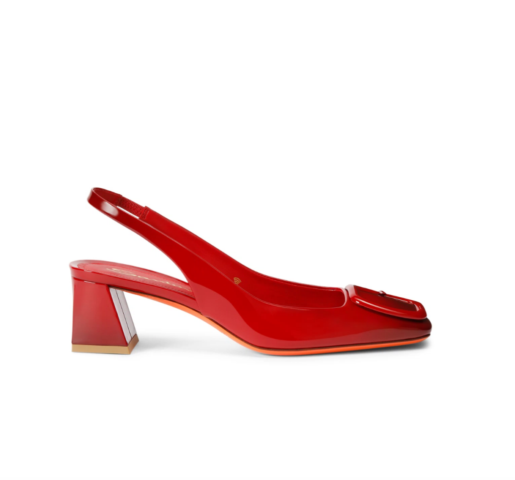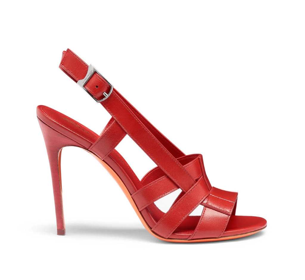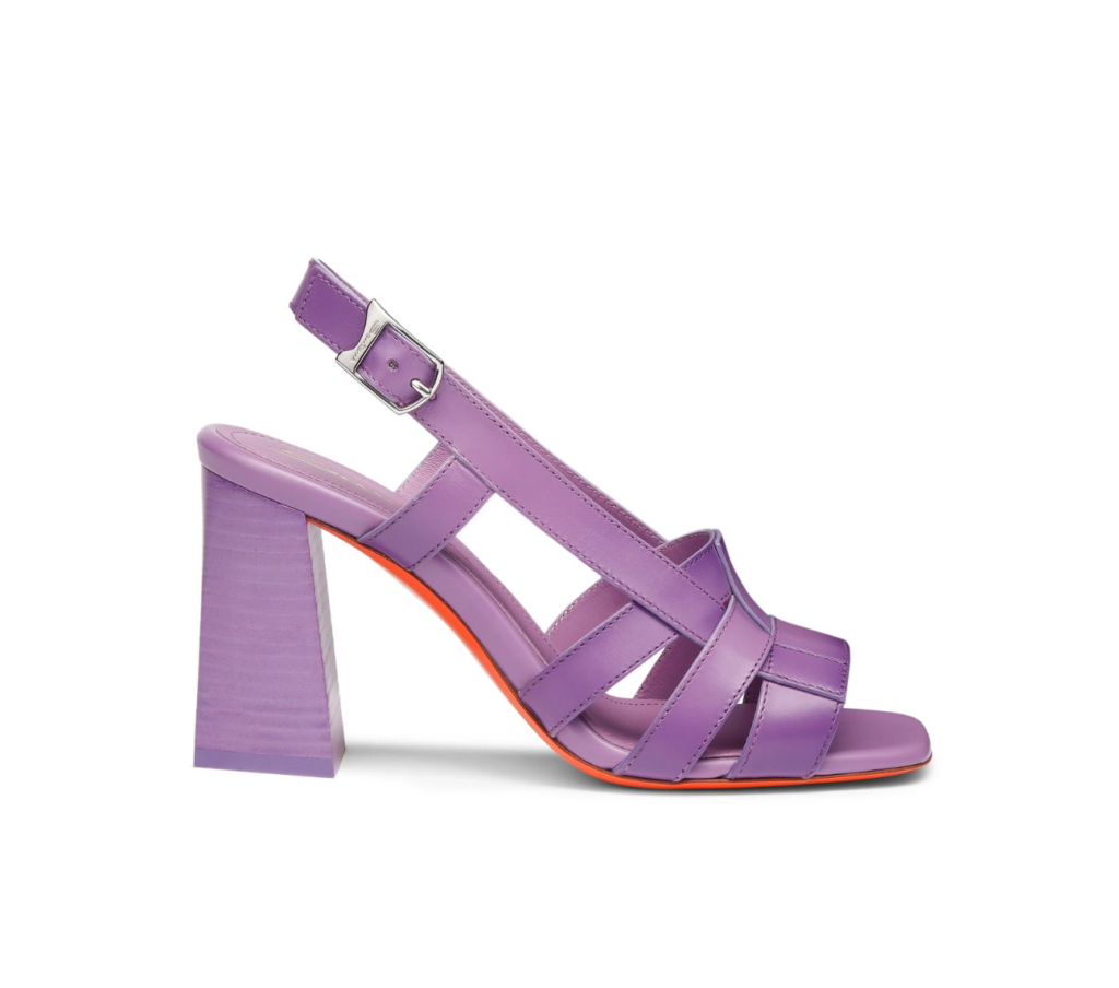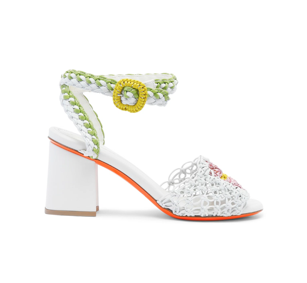 For its latest collection, the storied Italian maison merges exquisite Old-World craftsmanship with a fresh and airy palette—think: powder-blue pumps, gumball-pink suede loafers, zingy orange sandals, and red-hot slingbacks. While many styles are drenched in saturated shades, others are punctuated with unexpected shocks of pigment, like the “Oly” sneaker—a cool retro-inspired trainer featuring bold color-blocking. The nappa leather block-heel sandal is another highlight, with zesty shades of lemon, lime, pink, grapefruit, and tangerine woven throughout a crisp white base.