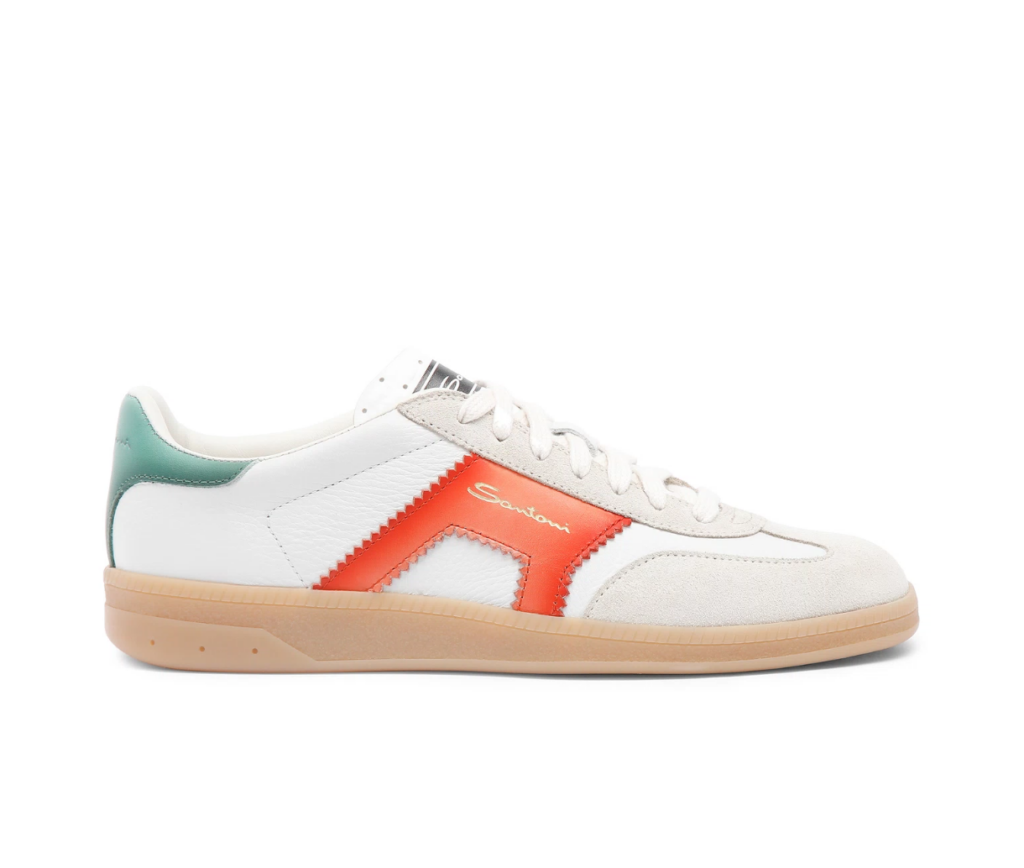 White, Orange, and Green Leather Suede Oly Sneaker $650