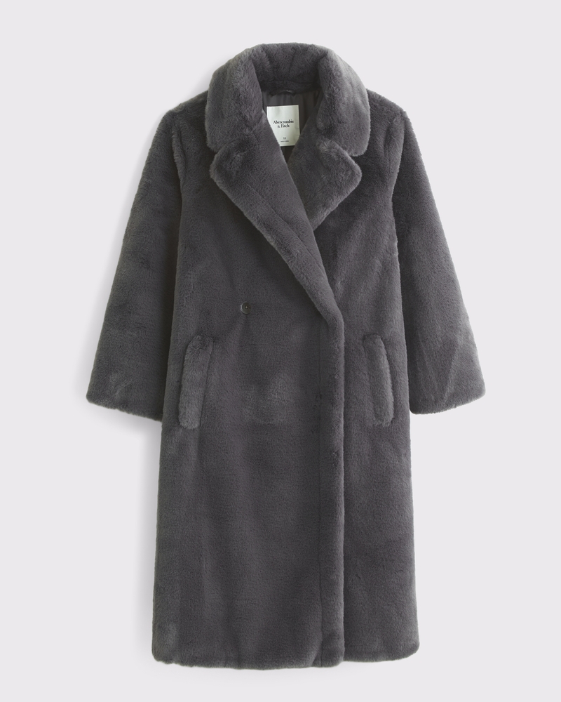 Double-Breasted Faux Fur Coat $136