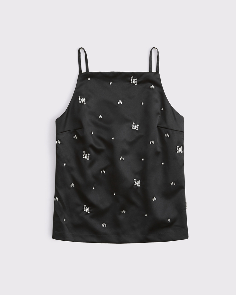 Satin Embellished Open-Back Apron Top $60