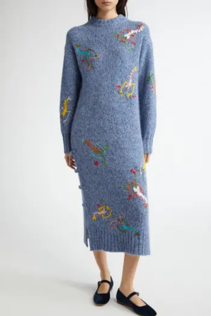 YanYan Shrimp Embroidered Long Sleeve Maxi Sweater Dress $795
