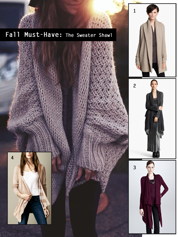 By Susan Linney on 2013/09/21Stylish shawl cardigans are a must for tricky autumn temps. What is a shawl cardigan? It’s really simple. It’s a combo of two key fall staples. It’s cozy, loose and flowy (like a shawl), but has sleeves and a fit that keeps it in place (like a sweater). Vince Ribbed Shawl Cardigan This chunky, knit cardigan is a great […]