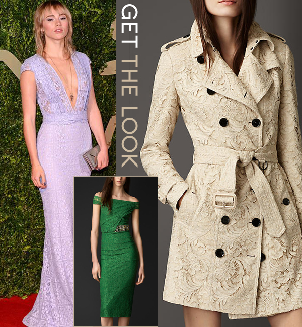 By Joyce Huang on 2014/05/22Model Suki Waterhouse was quite the stunner at the British Fashion Awards. She opted for a sexy, but elegant, plunging Burberry Prorsum evening gown. The low neckline was accented with an edgy pendant necklace and the intricate lace material gently hugged her curves. Plus, lace is such a romantic and feminine material to wear. Steal her look with these other […]
